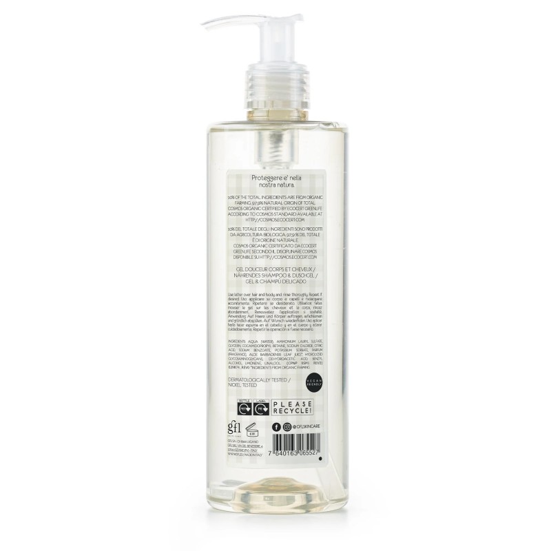 Un produs de curățare pentru păr și corp certificat organic*, ideal pentru utilizarea zilnică, doar o cantitate de mărimea unei nuci este suficientă pentru a curăța și a hrăni pielea în profunzime.